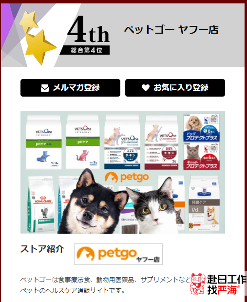 第四名、ペットゴー ヤフー店