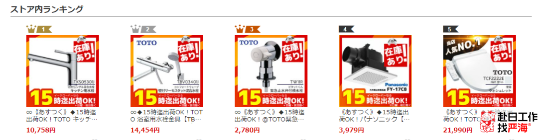 主營產品是換氣扇,水龍頭配件,熱水器,空調等家庭必須品。【家電と住設のイークローバー】在雅虎排行榜中已蟬聯13年,不得不贊嘆他們的服務是真的好。店鋪上架的產品90%以上都是有庫存的產品,15點前下單的產品當天均可發貨。對于不方便去實體店購物又急需的人群來說,這家店簡直是救星。