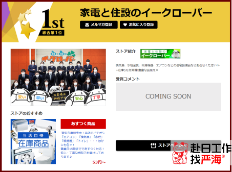 主營產品是燃氣灶,IH加熱器,洗碗機等家用電器?!炯译姢茸≌O備の取替ドットコム】在雅虎排行榜中也已蟬聯4年,服務超過150萬戶家庭。店鋪所販賣的產品不僅是產品本身,還包括安裝、維修等。產品免費質保3年,并且24小時對應緊急電話,用戶體驗感非常不錯,好評連連。
