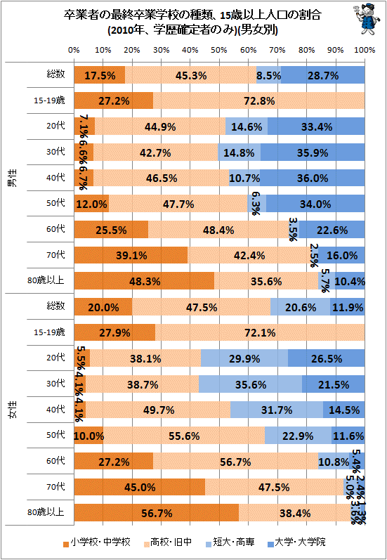 日本從1920年開始,原則上每隔5年實施一次人口普查,而每隔10年的調查為大規模調查,在大規模調查中,15歲以上的人的最終學歷也包含在內。