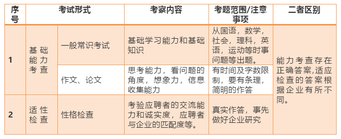 日企的筆試一般分為以下幾種,一般從學習能力和性格上對面試者進行測試,根據企業選人要求不同,需要參加的考試種類也有所變化。
