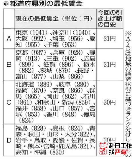 3、2022年10月起,日本最新小時(shí)工資標(biāo)準(zhǔn)如下: