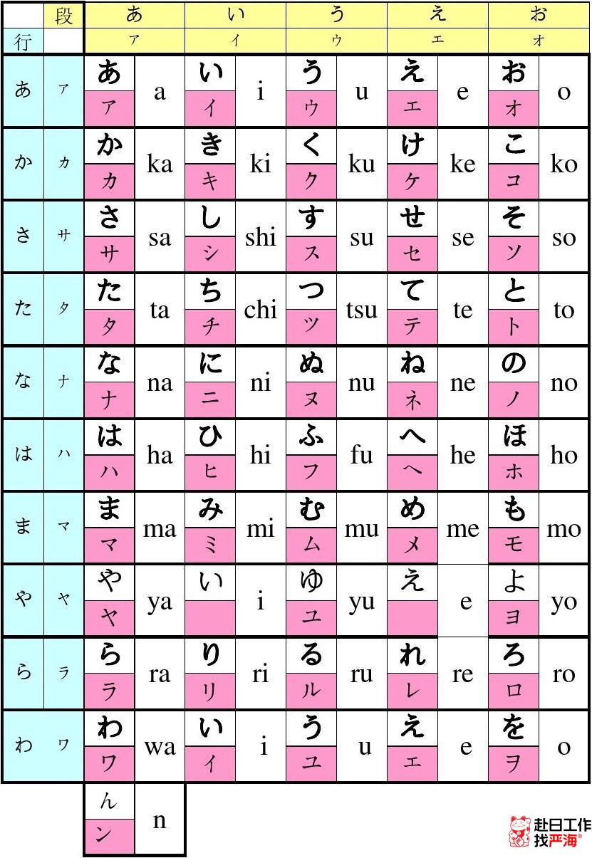 日語五十音圖表(完整版)
