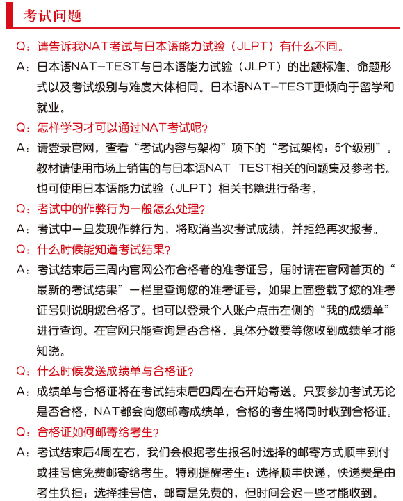 NAT-TEST一年有6次考試,面向母語非日語的人士提供的檢驗日語能力的考試,是赴日留學和就業的資格考試之一。