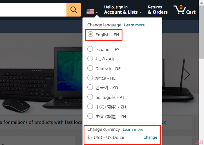 2、您也可以訪問 www.amazon.com,選擇地址:配送至日本